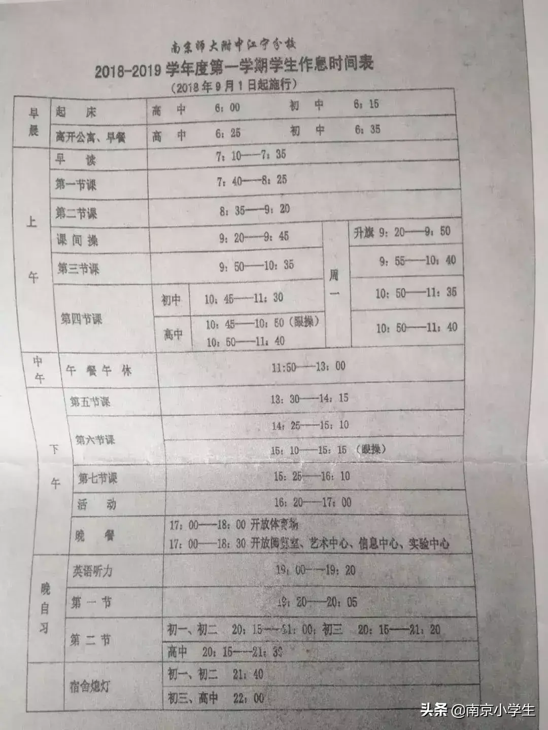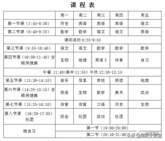 学校作业量还好,基本上都是在晚自习的时候就完成了,九点钟晚自习结束回来都是背着空书包回来的。作息时间如下图所示: