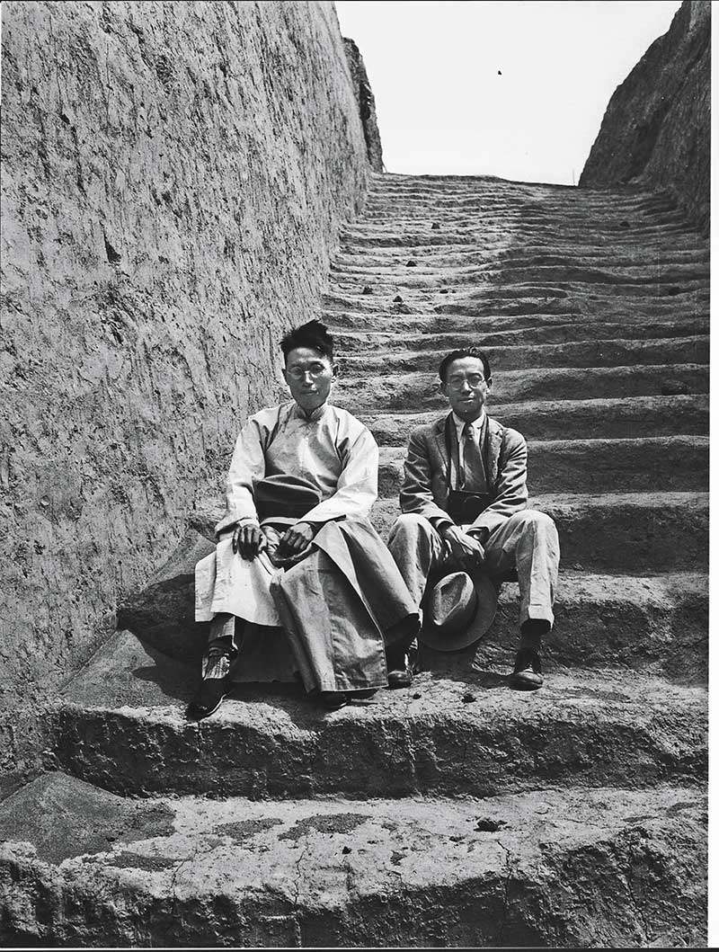 1935年春,梁思永(左)、梁思成两兄弟在殷墟西北岗1002号大墓北墓道合影