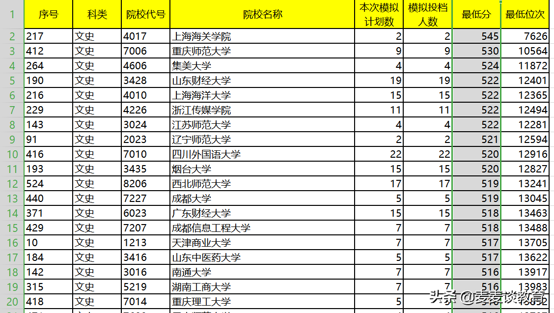 文史类招收人数最多前20名院校