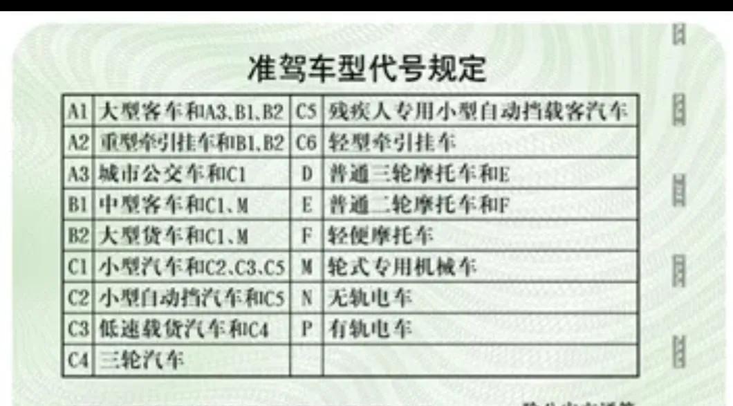 在驾驶证准驾车型代号规定当中,对摩托车驾驶证可驾驶的车型做出了明确的规定。