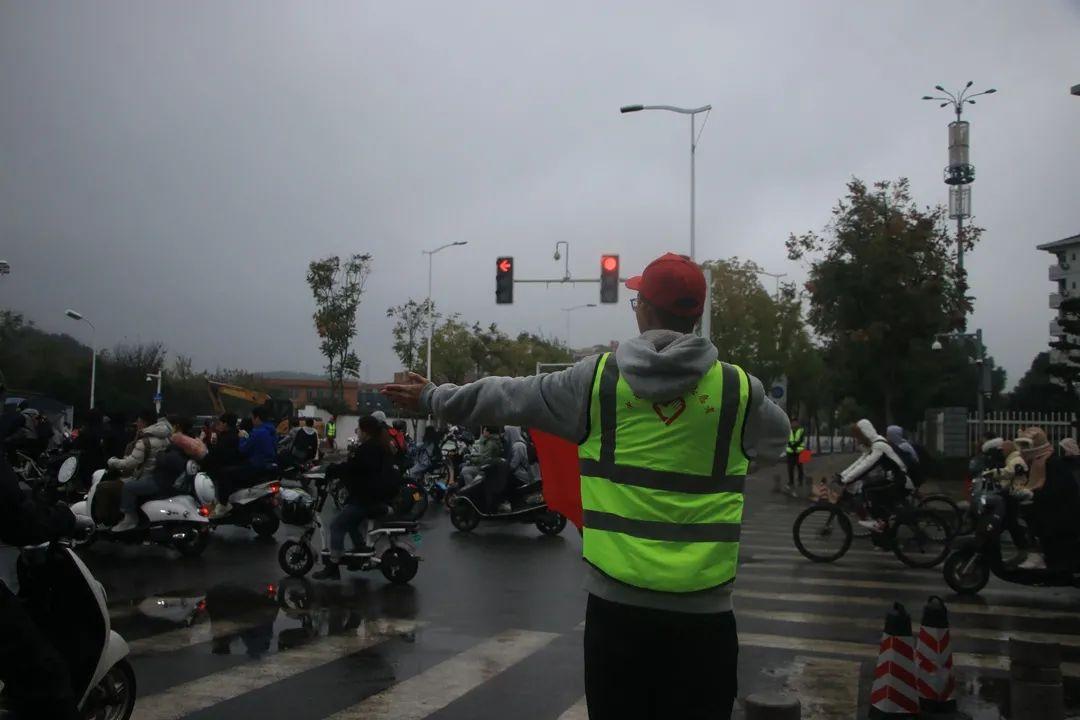 烈日炎炎里、寒风凛冽中,总有那一抹靓丽的浅黄色背影,执着而坚毅 、风雨无阻,在每个上下学的高峰期指挥交通,帮助我们安全穿梭于南校与新校之间。