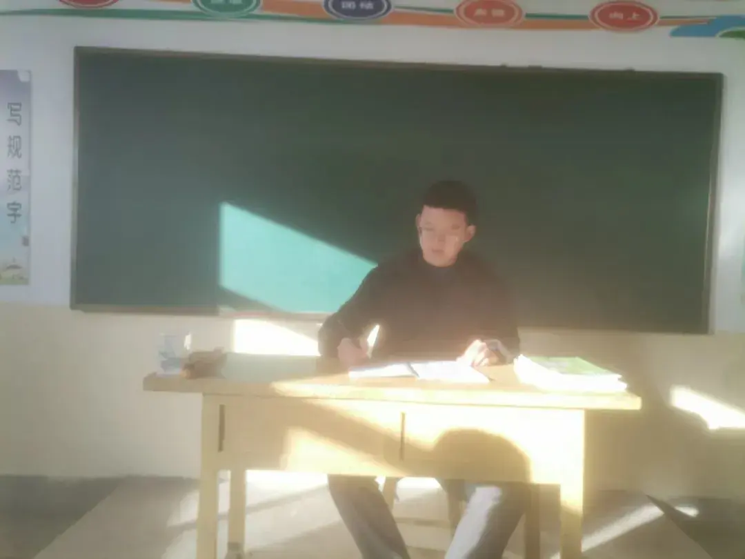 伴随着早晨初升的阳光,大洲老师认真地批改着作业。学生们学习主动积极,遇到不懂的问题总是及时询问老师,直到把题目搞明白为止。在阳光的照耀下,孩子们显得青春夺目,像极了早晨八九点钟的太阳。