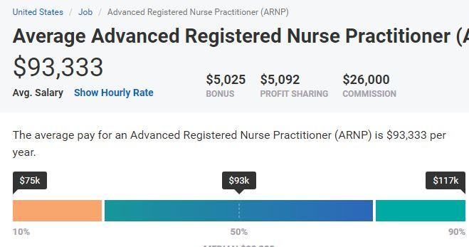 高级执业护士平均薪资增长,数据来源:PAYSCALE
