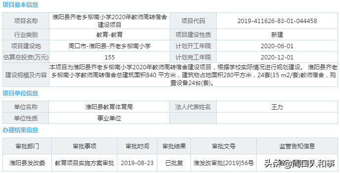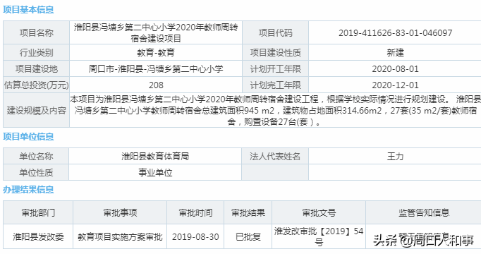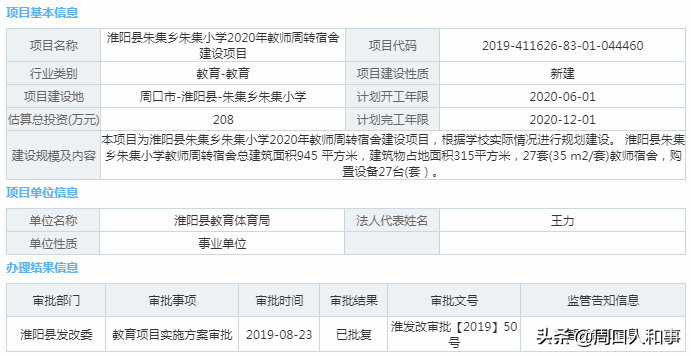 目前,淮阳县教师周转宿舍建设项目获批,具体如下: