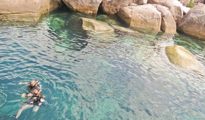 涛岛的开放水域课程不含住宿,费用为11,000泰铢(约合350美元)。(从前,岛上几乎所有潜水学校都将住宿与课程捆绑在一起,但是在最大的潜水胜地之外,住宿变得越来越少了。如果包括住宿,那是一个非常基本的粉丝室,或者您可以升级到较便宜的一款。)