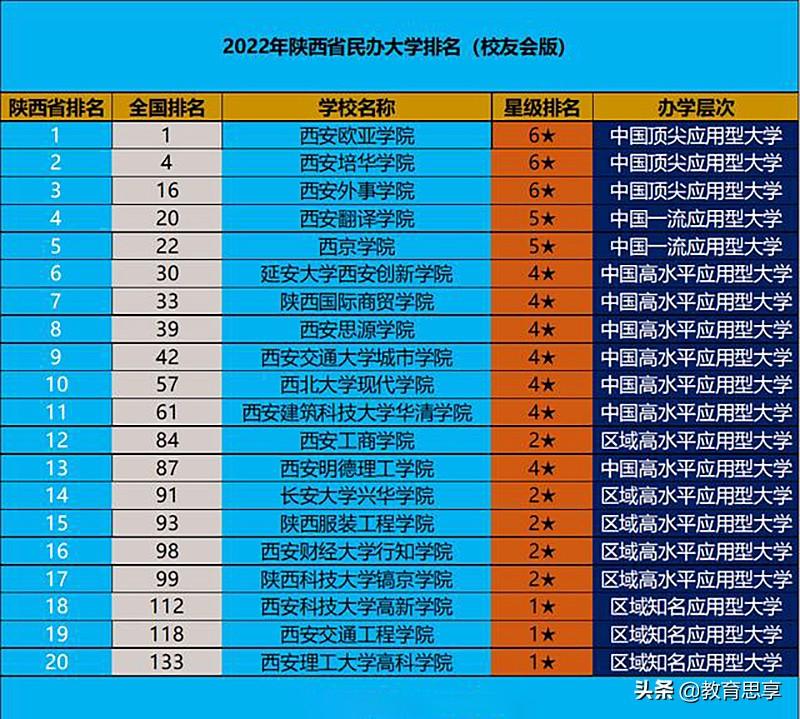 比如在中国校友会网(艾瑞深中国校友会网)最新发布的2022中国大学排行榜中,陕西民办高校排名前5 的就是: