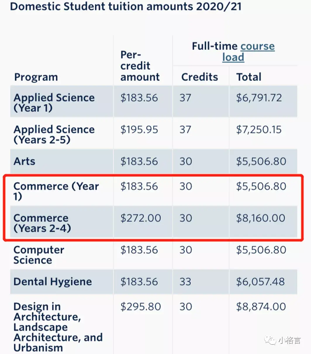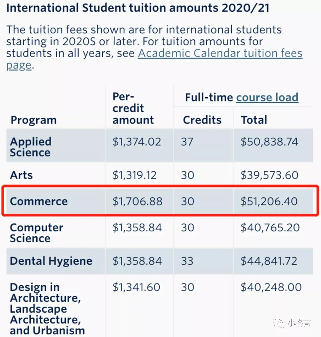 UBC大学也是根据学分制,不同的专业学分不同,每个专业每个学分收费也有差异。
