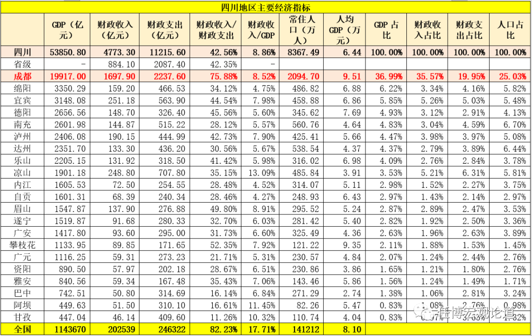 数据上显示,四川地区呈现出经济体量大、单核现象比较突出、债务负担较重、财政自给率偏低等特点。