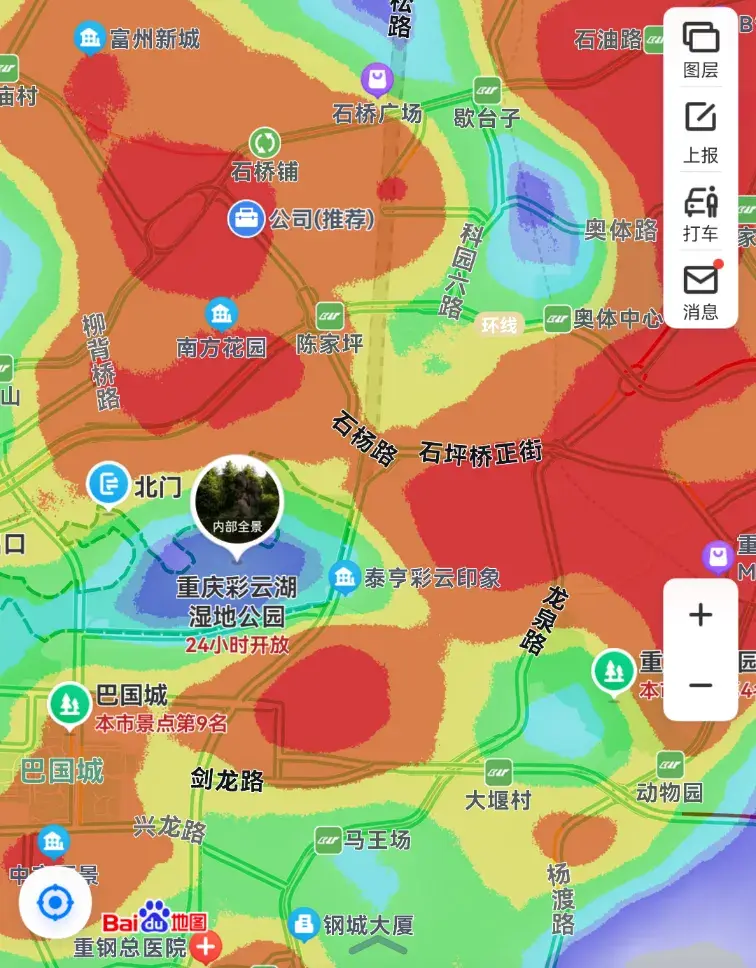 从宜居指数来看(以生态资源为主要参考指标),中央公园板块,有“亚洲第一大”的城市公园,四周房企云集,且多为全国TOP30;而彩云湖片区,则有重庆首个国家级湿地公园坐镇。