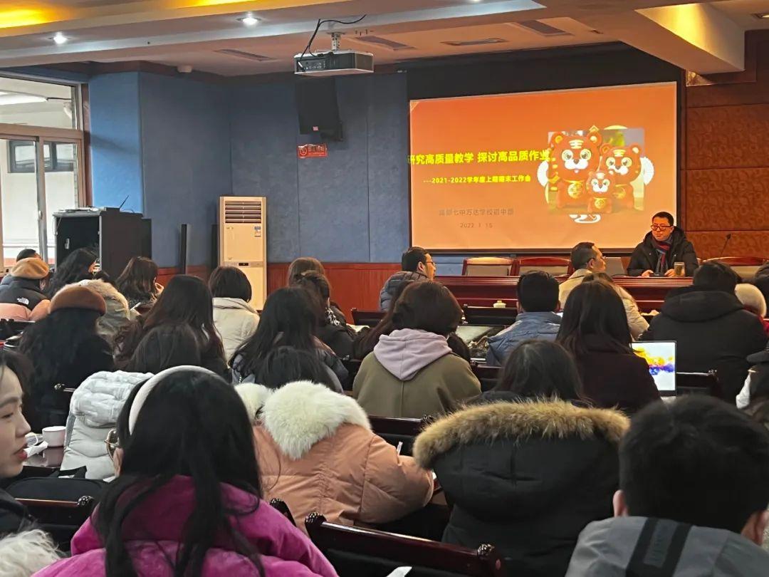 岁月无声,时光悄然,一学期紧张而有序的教育教学活动随着期末的到来而落下帷幕。1月15日上午,成都七中万达学校初中部全体教师在五楼会议室参加了一场扎实而有效的总结会,此次会议由初中教管部李华亮副主任主持。刘强校长、梁惠娟副校长和余睿校长助理莅临参与此次会议,并对初中部工作做重要指示。