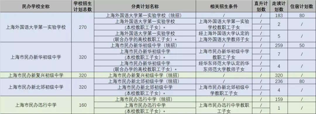 长宁区:上海民办包玉刚实验学校初中部计划均为直升计划,无统招青浦区:新增上海青浦兰生复旦学校初中部招生计划浦东新区:新增上海浦东民办未来科技学校初中部住宿计划(可跨区报名,去年仅在浦东新区招生)闵行区:新增上海闵行区民办美高双语学校初中部住宿计划(可跨区报名,去年仅在闵行区招生)嘉定区:民办远东学校不设住宿计划,2021年不再跨区招生部分民办学校分设了“住宿”计划,不仅区内学生可报,也对就读意愿区外的学生开放报名,也就是全市招生,具体看各校招生简章。有住宿计划数的民办初中名单如下: