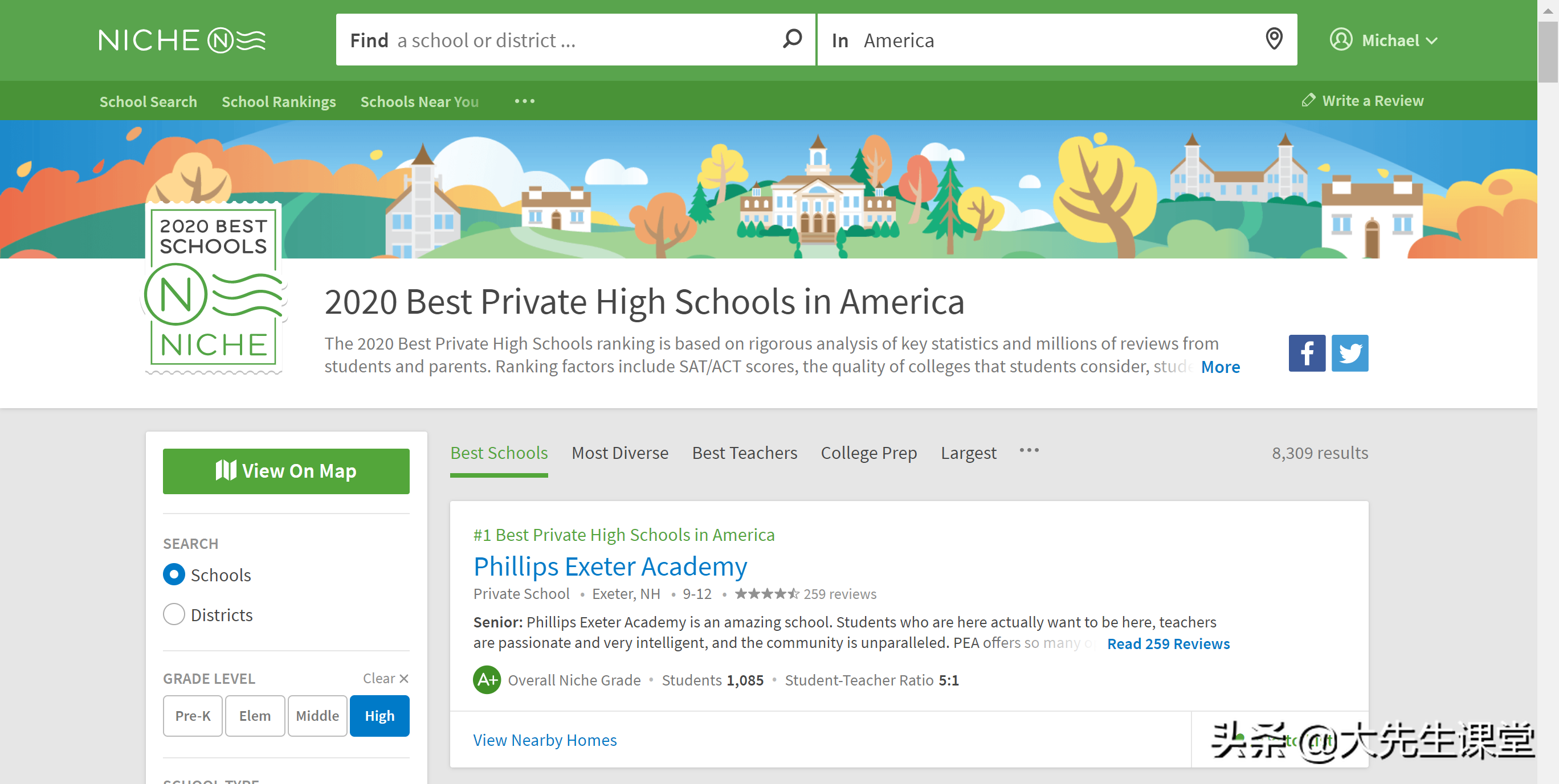 美国有个超级牛的排名网站--Niche,号称是收集了超过一亿的美国家长和学生的反馈,再加上官方数据,才制作出学校排名,这几年Niche的排名大受欢迎。