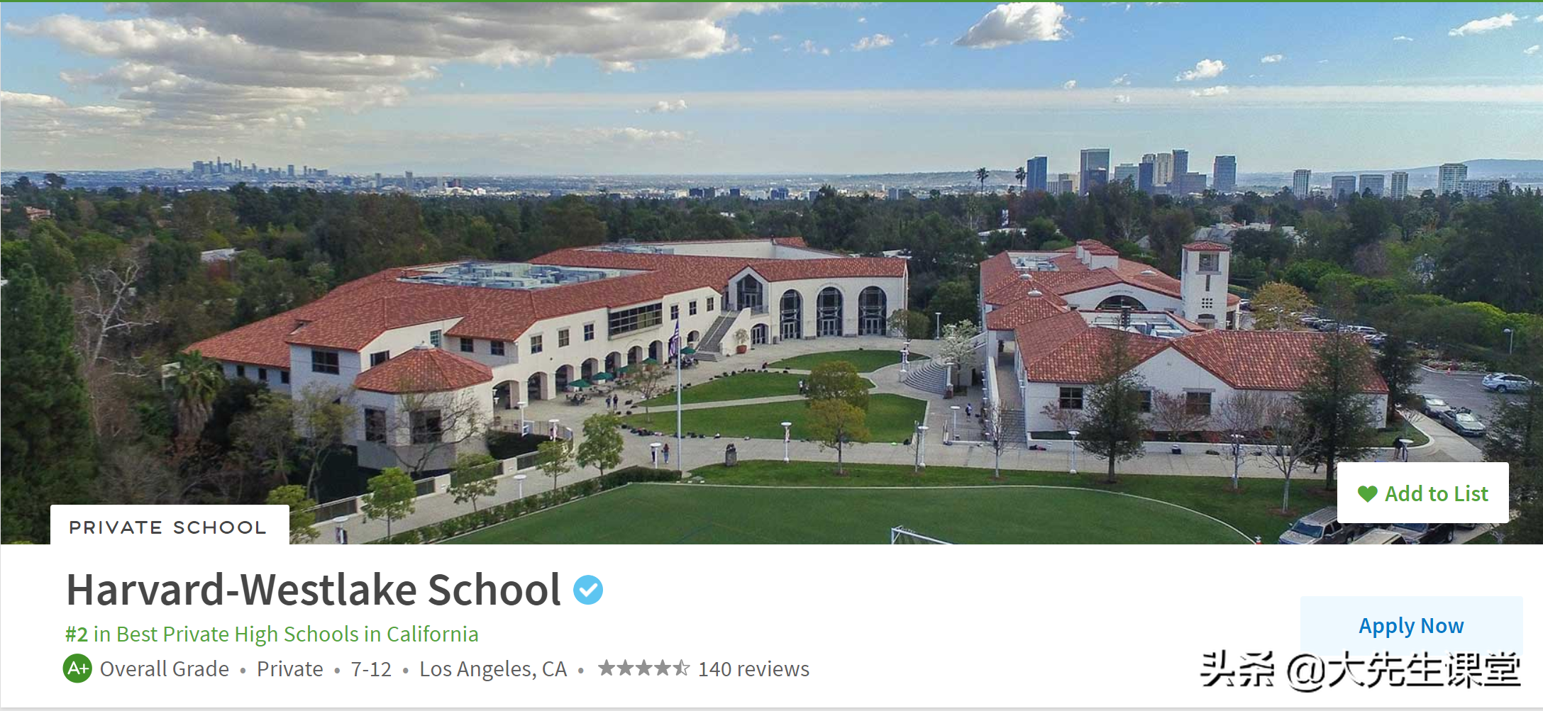第六名:Harvard-Westlake School $39,700/年 加利福尼亚州