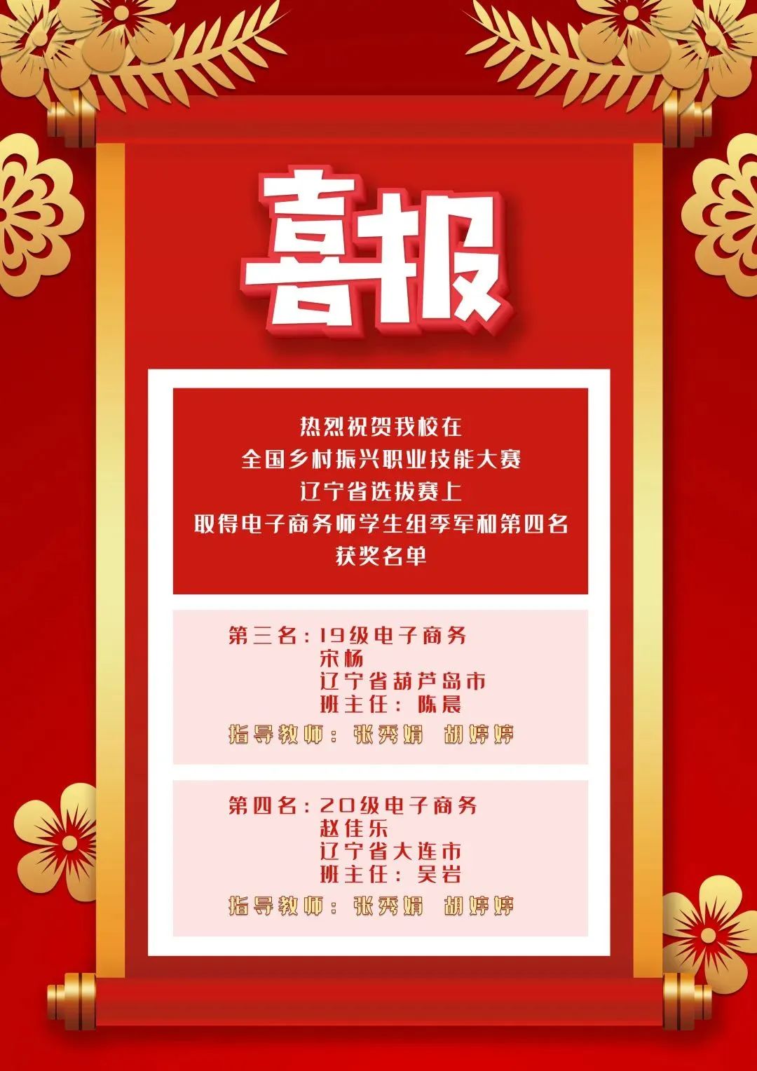 在全国乡村振兴职业技能大赛辽宁选拔赛中,该校取得电子商务师学生组季军和第四名的佳绩。