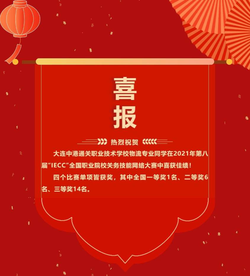 在第八届全国职业院校关务技能网络竞赛中,该校现代物流专业荣获通关基础知识项目一等奖 1 人,三等奖 3 人;报关单证操作项目三等奖 5人;国际货运代理项目二等奖 1 人,三等奖 5 人;国际贸易基础与实务项目二等奖 5 人,三等奖 1 人的佳绩。