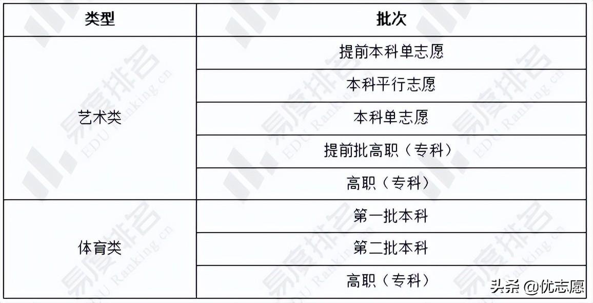 2021年江西高考艺术类设提前批本科、普通批本科、提前批高职(专科)、高职(专科)等4个批次。2022年江西将原先的艺术类普通批本科批次拆分为本科平行志愿和本科单志愿。
