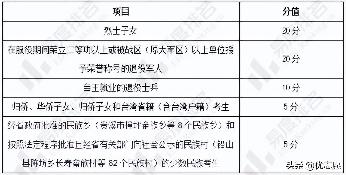 表4. 2022年江西高考加分方式