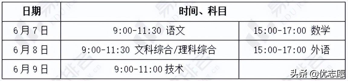 表1. 2022年江西高考考试时间安排