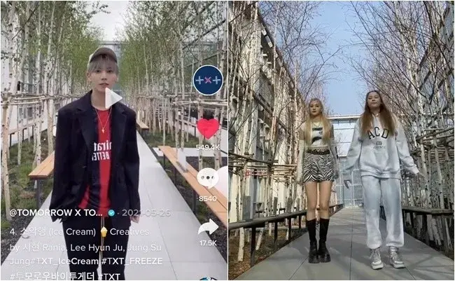 而且舞蹈挑战的场所看起来像HYBE公司大楼,所以推测两个姐妹是不是为了见TXT休宁凯去了HYBE公司大楼。