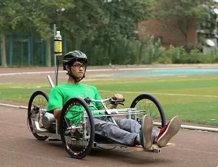 这是2014年团队首此迎战Honda中国节能竞技大赛时打造出的专属赛车。那个总是疾驰在校园林荫路上的赛车,长约2.8米,宽约1米,造型独特,速度惊人。在2014年10月的广州国际赛车场里,车队成员用48.98毫升燃油跑完了10.449公里长的赛程,取得大赛全国30强的好成绩。