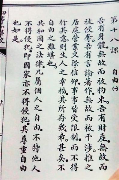 学校为我们放映幻灯片,内容是“从猿到人”和劳动创造世界的内容。我们学唱了《国际歌》《国歌》《歌唱祖国》等许多歌曲。使人血液沸腾的《国际歌》,其中有一句“英特那雄耐尔就一定要实现”,在最后一段重复一次提高八度,那时不知道是什么意思,但唱着我们的血液已经沸腾起来了。后来我们还唱过一些歌,是把旧社会、新社会,旧民主主义革命、新民主主义革命区别开来。有一首歌词是:“旧社会好比是黑咕隆咚的枯井万丈深,井底下压着咱们的老百姓,妇女在最底层……”一首是:“我家住在天津城,中纺纱厂当女工,过去的日子如马牛,吃不饱、穿不暖,伊尔呀尔呦噢,苦难的日子没有头。自从来了共产党,阿宝也能上学堂……”