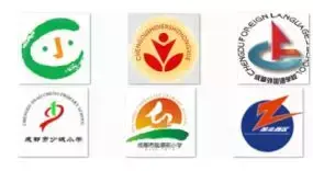 ▶很多校徽中都有一个“小人儿”,气势庄严的钟鼎以及文化感十足的书法出现的频率也很高,花草主要出现在小学。