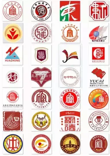 ▶圆形是中流砥柱,正方形、盾形也较常见,当然有的学校很个性,不圆不方,自成一派。