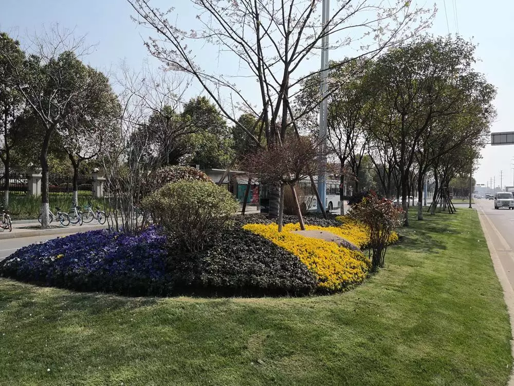 今年伊始,城投集团继续加快学校、医院等系列配套绿化工程,集中打造一批“依山就水,绿荫环抱”的节能环保绿色山水园林校园。风情门户:掬来新绿染商城机场路是进入义乌主城区的重要路段,又与后宅高速入城口、西站大道等节点相呼应,可以说是义乌城区的“形象展示窗口”。原先机场路、后宅高速入城口、西站大道两路两侧及中央绿化带的树木草地缺乏层次感,隔离带绿化形式呆板,缺乏色彩,景色与其“窗口形象”不匹配,不少绿地还夹杂大幅广告。自项目提档改造项目实施以来,该集团利用花卉、开花地被、时令花草和草皮在我市城区各主要道路交叉口进行组合种植,形成柔和婉约的线条、色彩丰富的花境,累计提档建设交叉口绿化节点80余个。