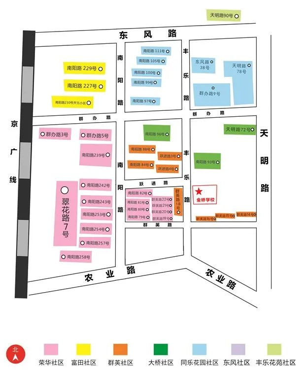 农业路32、35、36、38、44、45、53、54号院;南阳路55、56、57、62、68号院;丰乐路17、18、19、20、21、22、23号院;天明路52、54、56、58、60号院;生产路6、7、8、9号院;群英路8、10、12号院。