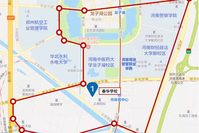 ①平安大道以南,文苑南路以北,文苑西路以东,东四环以西(河南中医药大学、河南警察学院、河南司法警官职业学院、河南财经政法大学)。