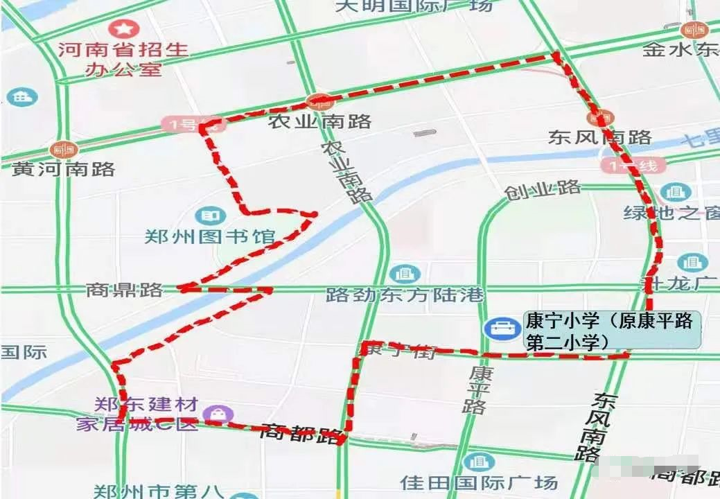 招生范围:农业南路以东、东风南路以西、康宁街以南、商都路以北的区域范围。