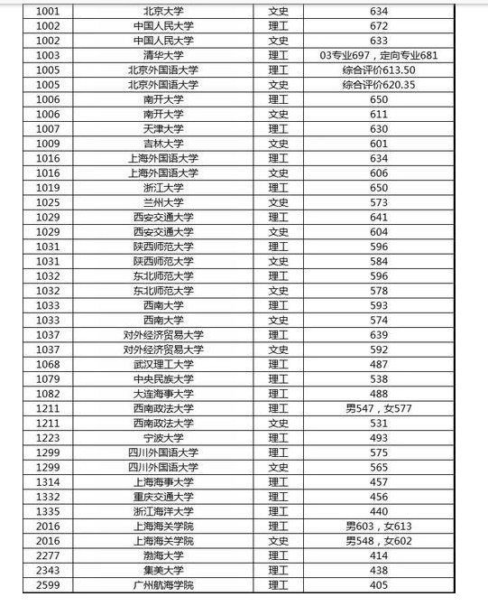 数据显示今年投档线分数最高的3所学校:北大理工类682分,文史类634分。清华理工类681分,中国人民大学理工672分,文史类633分。