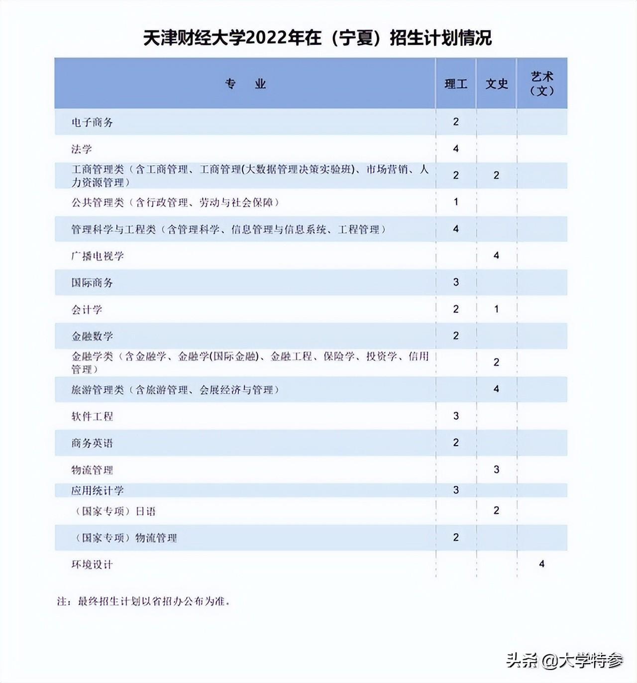 天津财经大学2022年高考在宁夏本科一批理工类投档线仅为422分,远低于同城的天津师范大学,天津外国语大学等高校。特别值得一提的是,在投档线已经这么低的情况下,该校竟然未能完成招生计划,招生计划28人,缺额13人,缺额占比近50%,可以说是比较高了。