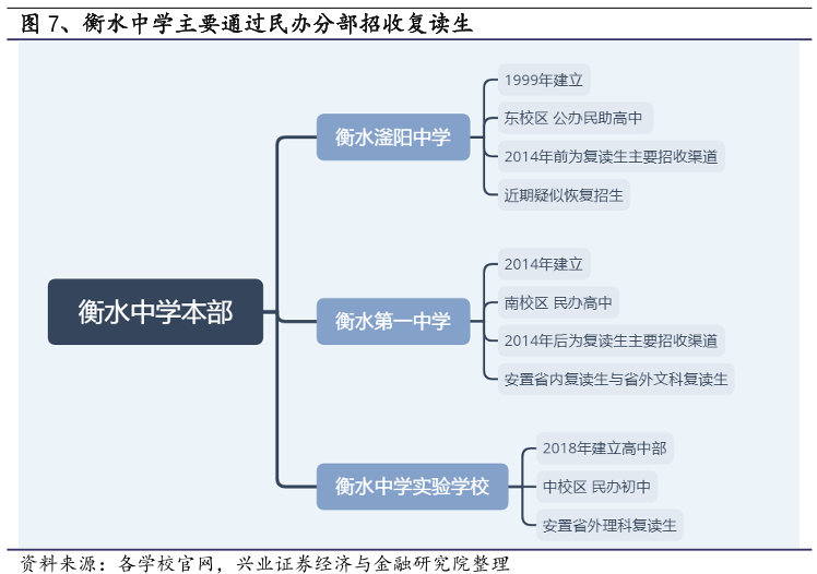 其中,云南衡水实验中学是由第一高中教育集团与衡水中学合作创办。其他学校则靠复制“衡中模式”,或与地方合作办学,或与房地产开发商合作办学。