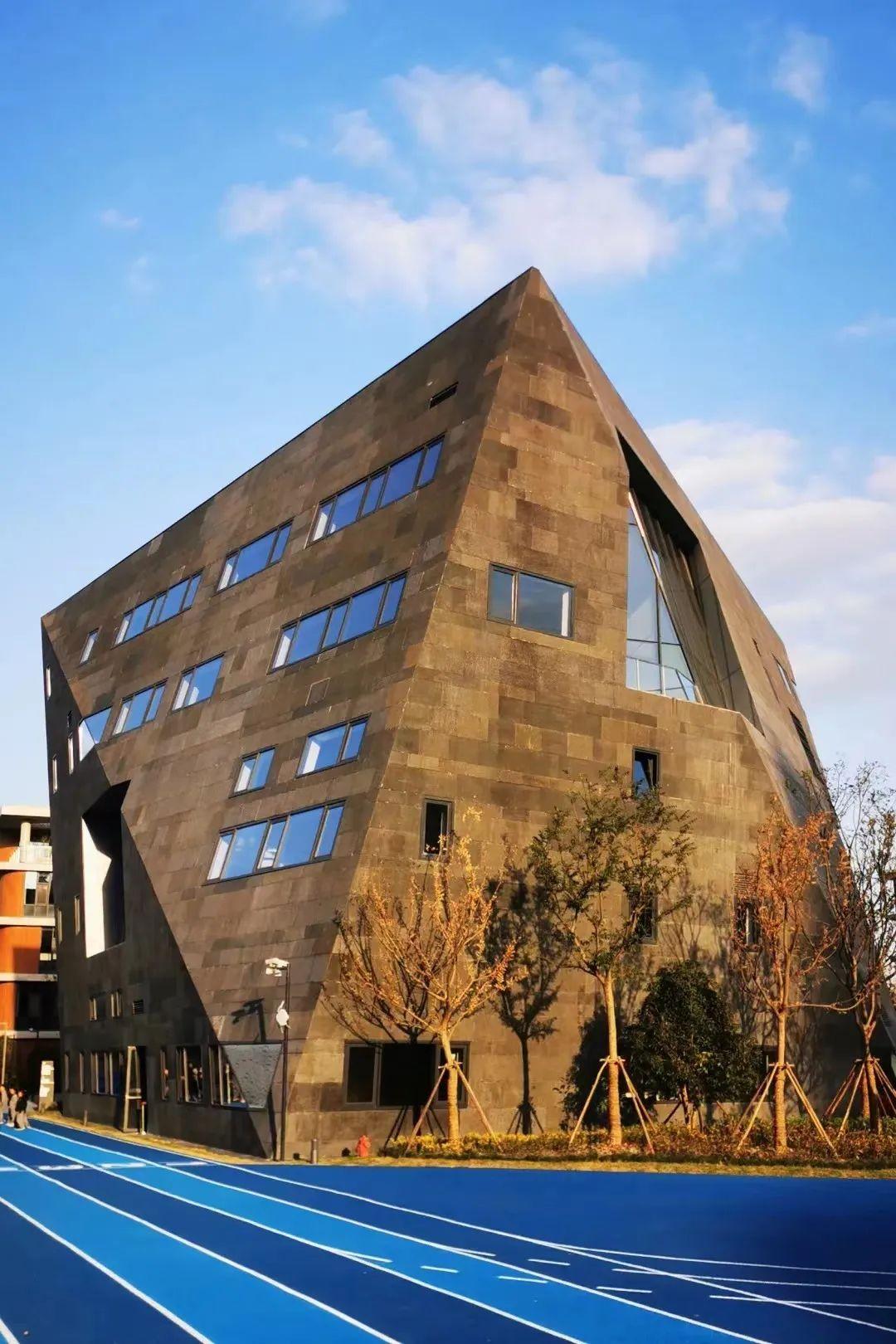 外形如同不规则黑宝石的艺术中心,容纳了表演艺术教室、视觉艺术教室与公共展览空间。它立于校园中心,蓝色跑道直达,为整个校园提供了知美、达美的路径。