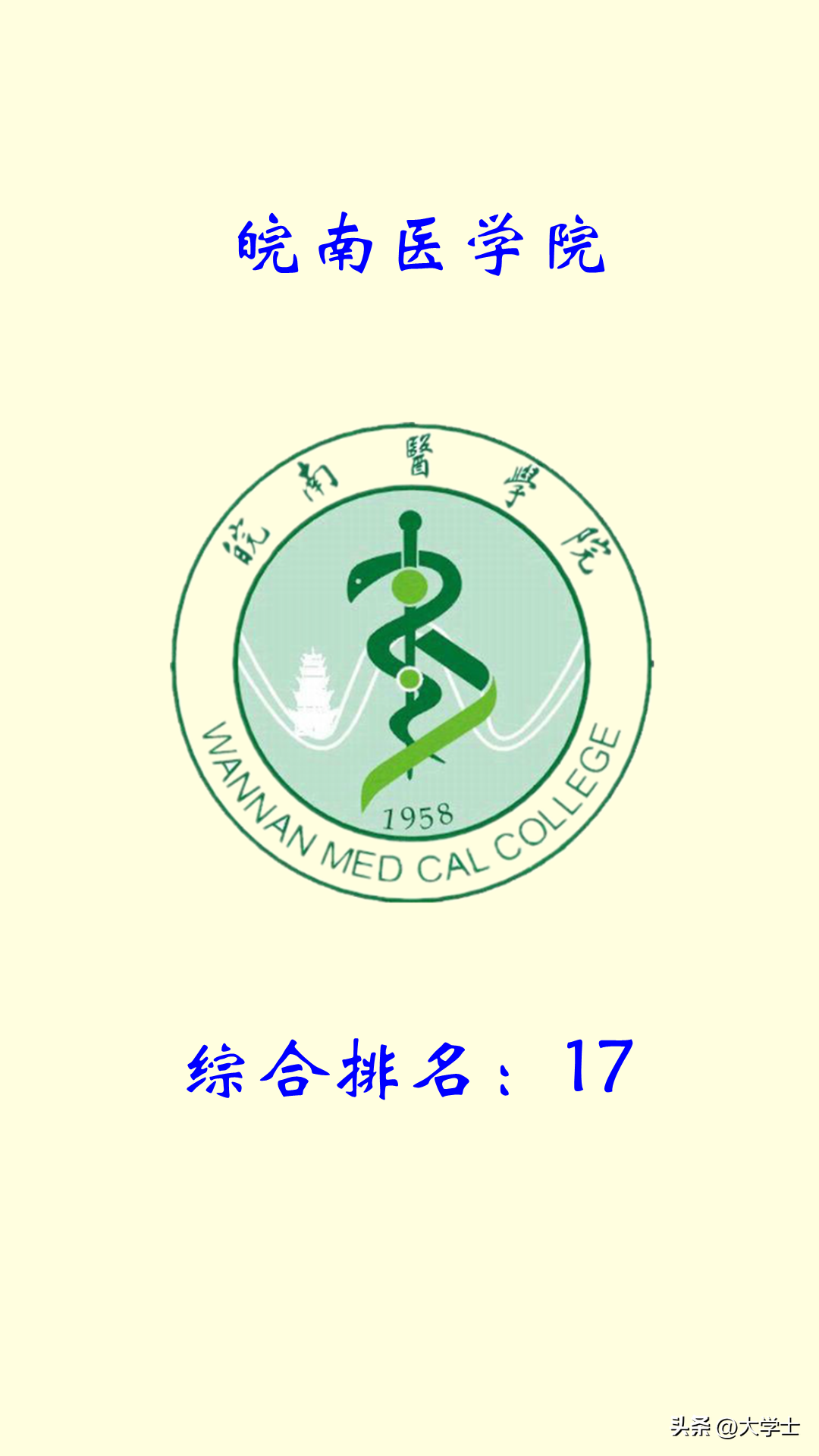 安徽医科大学排名全国医药第十六,安徽中医药大学排名全国医药第三十八,蚌埠医学院排名全国医药第四十一。