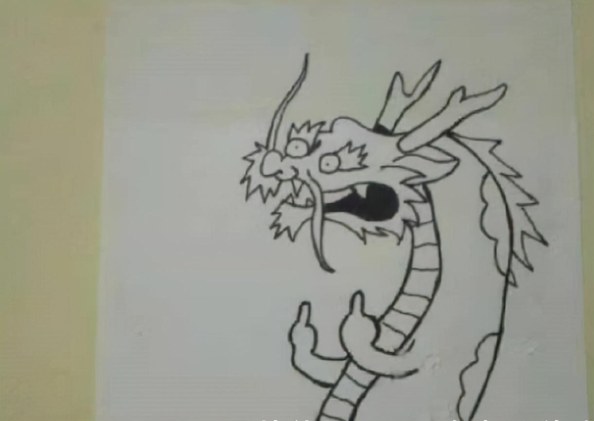 这条龙真的是绝了,感觉作者本来想要画的威武雄壮,但是 没想到,最后化成了卡通版,但是无伤大雅,看起来整体感比上两个强多了,就是不能体现学生的绘画水平,还得继续上心啊。