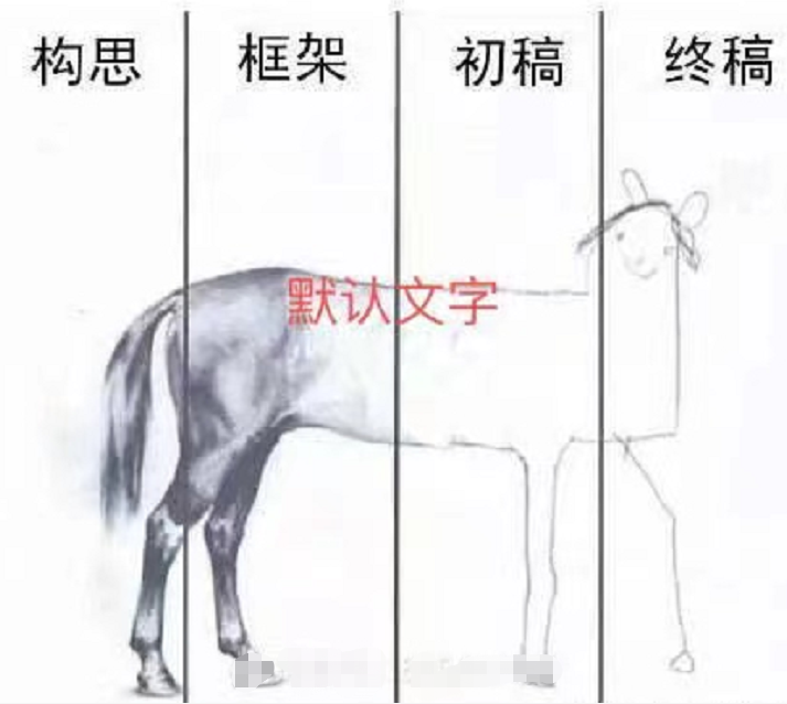 这名学生的大马很有“虎头蛇尾”的标志性,明明画了一个非常精致的马尾,但是前面只能乱画几笔,给大马一个全身真的是太仓促了,还有人把这个比喻成创作的全过程,从构思,到终稿,比喻非常恰当了,学生“虎头蛇尾”状况频发,终究是时间问题。