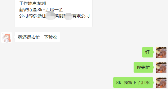 测试工资低不低,以新一线城市杭州为例,平均薪资大概8k左右。我们的卓京学员燕燕一毕业就达到了杭州的平均薪资以上!