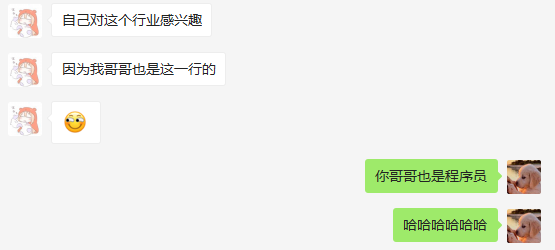 而燕燕的哥哥自己本身就是IT行业的,妹妹也跟着来了。怎么说,这就是IT行业的魅力!