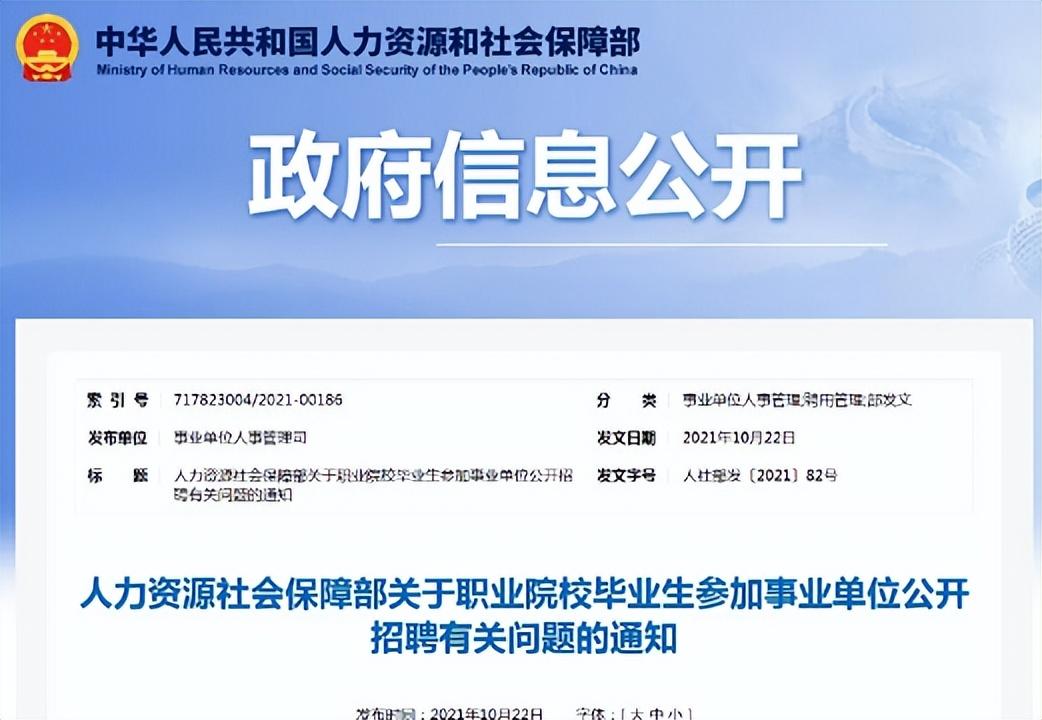 除新职业教育法相关规定以外,早在2021年人社部就曾明确“事业单位招聘不得限制毕业院校”。