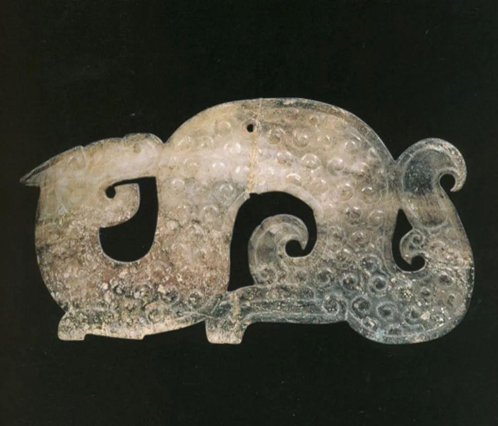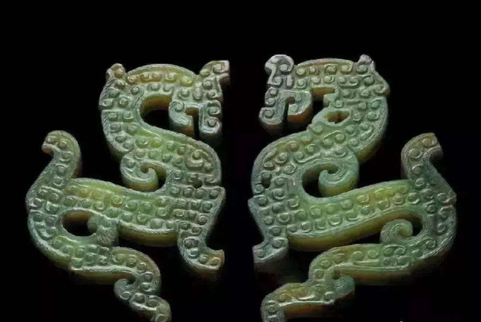 从玉质来看,剧中的玉平整光滑,造型圆润分明,躯体呈s形,有角、鳍等装饰,边沿还有凸起的蚕纹。