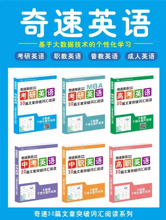 除了考研英语30篇文章以外,奇速英语—基于大数据技术的个性化学习!30篇文章突破英语词汇阅读系列(考研/职教/普教/成人)即将全部上线,欢迎购买学习、合作代理。