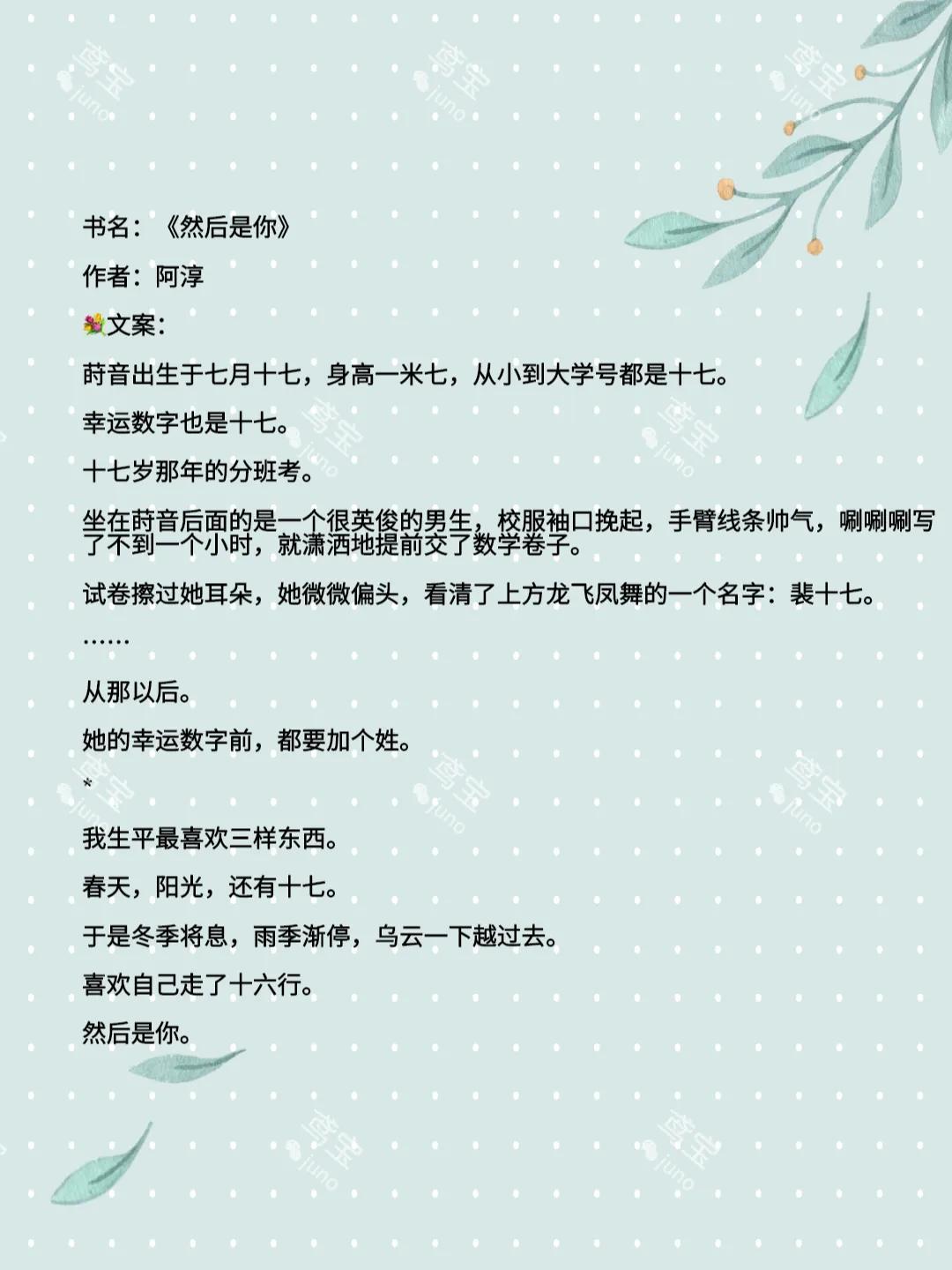 今天给大家推荐的是夏日清凉校园小甜文[玫瑰]
