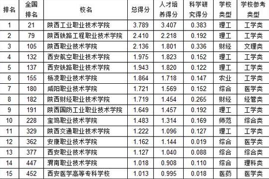 总结:根据武书连的排名,陕西工业职业技术学院、陕西铁路工程职业技术学院、陕西职业技术学院、西安航空职业技术学院这四所大专院校在陕西省排名前四,其中陕西工业职业技术学院、陕西铁路工程职业技术学院、西安航空职业技术学院这三所高校是理工类院校。