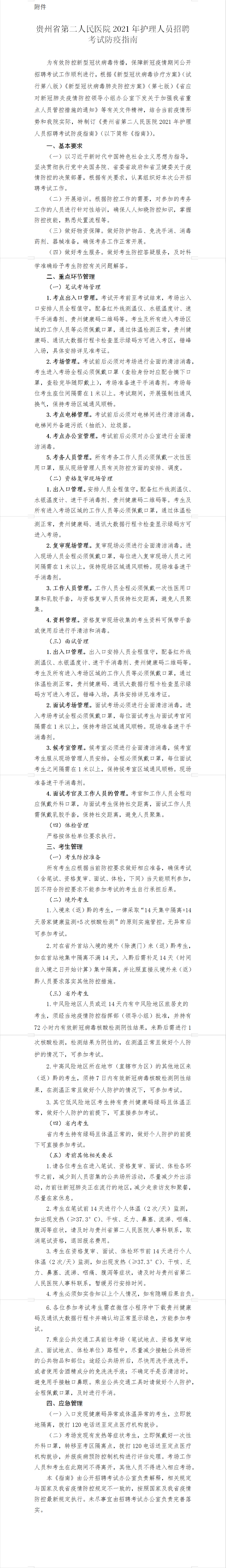 备注:请各位考生务必仔细阅读《贵州省第二人民医院2021年护理人员招聘考试防疫指南》