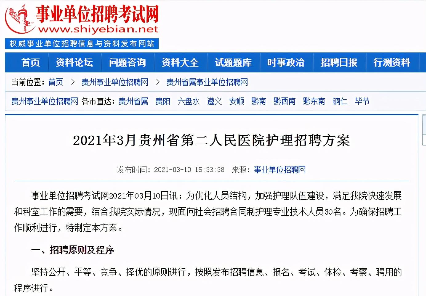 3、面试时间:在贵州省第二人民医院网站(http://www.gz2h.cn)、贵州省第二人民医院人事招考网(http://s21.seekfiz.cn)发布。