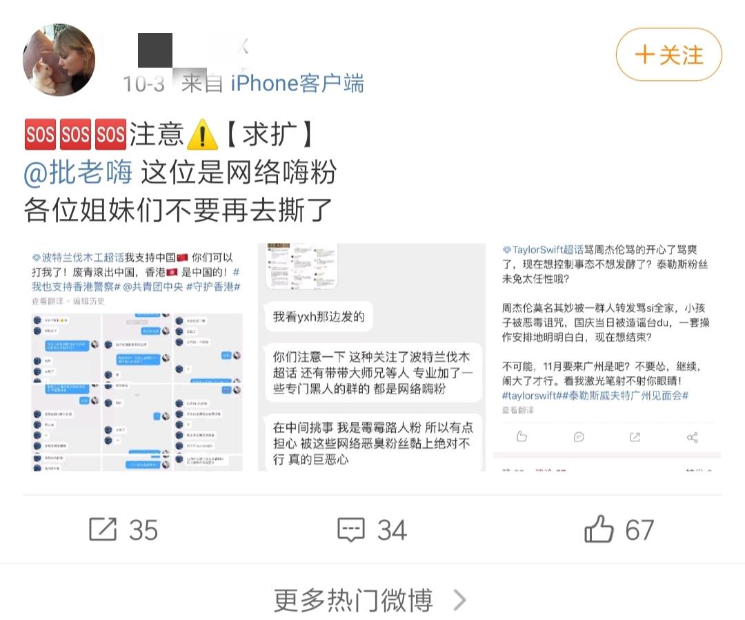 当笑点以为这是一位装作蔡徐坤粉丝,随后嘴臭引战LOL玩家,造成LOL玩家和蔡徐坤饭圈粉的争斗。但是经过微博搜索之后,笑点发现这位引战人还有一个新的外号“嗨粉”,她的事迹并不止有这五条微博。