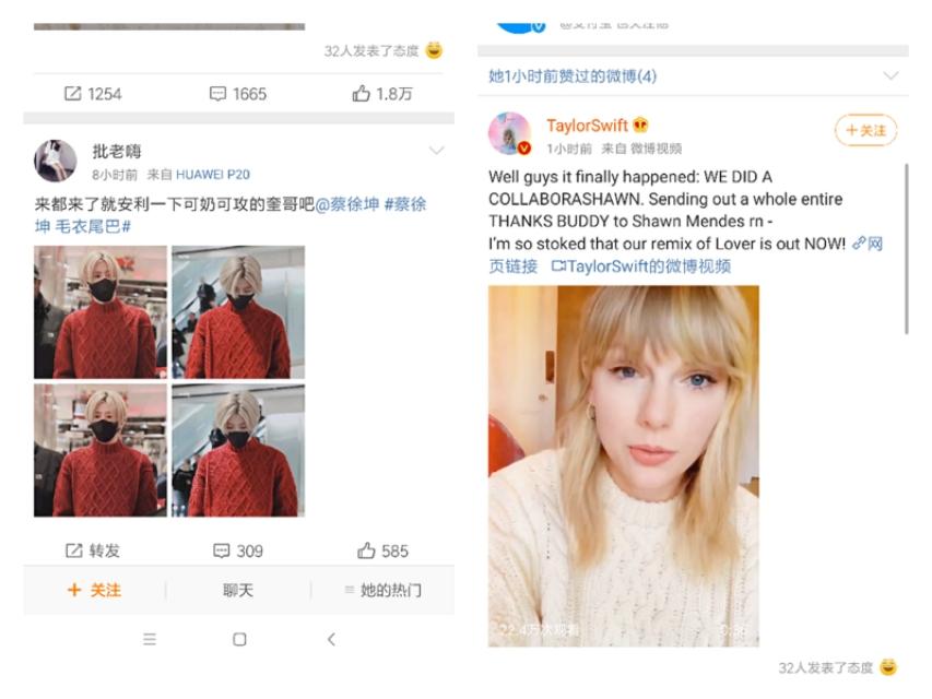该网络“嗨粉”发布过不少引战微博,但是被删除了,只剩下截图(截图中的右一微博是该嗨粉所发),目的就是为了两个不同阵型的粉丝互喷。