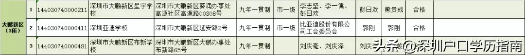 1.深圳市大鹏新区葵涌街道亚迪学校(民办)(初中部)